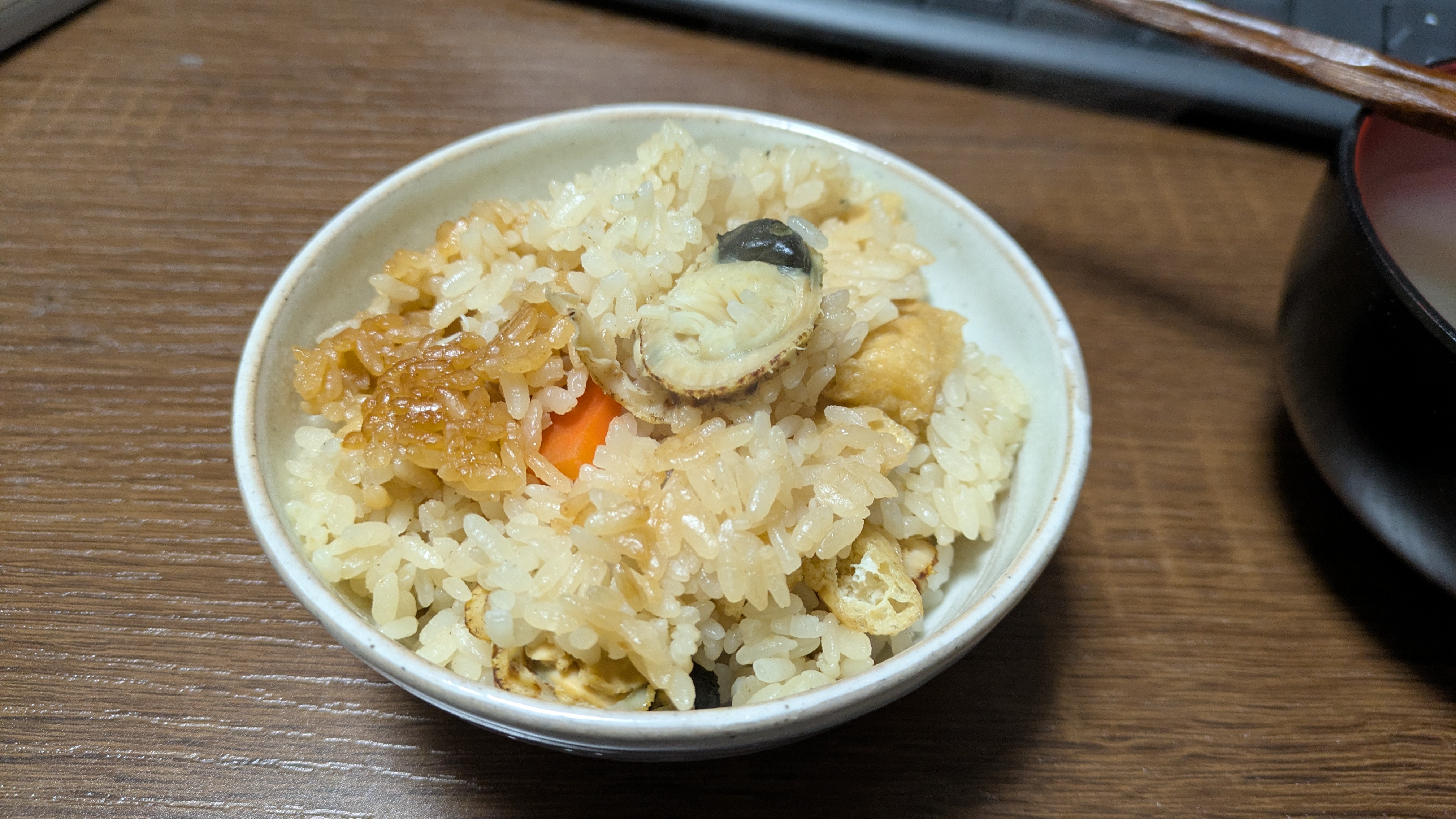 これがまぁ美味い。稚貝の実の部分はもちろん、ちょっと薄めかもなと思った出汁もちゃんと効いていてホタテが口いっぱいに広がる贅沢飯。